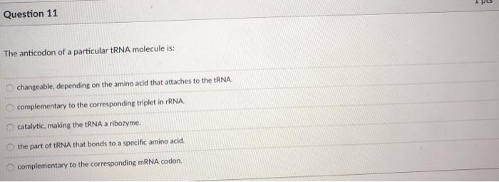 Solved 21 The Anticodon Of A Particular Trna Molecule Is Complementary To The Corresponding Triplet In Rrna Complementary To The Corresponding Mrna Codon The Part Of Trna That Bonds To A Specific